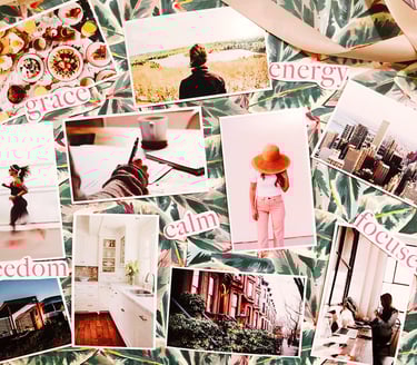 Once your supplies are gathered together, the fun begins! Start by going through magazines or online images to find words and pictures that represent your goals and dreams. Cut out the images most appealing to you and begin arranging them on the board.