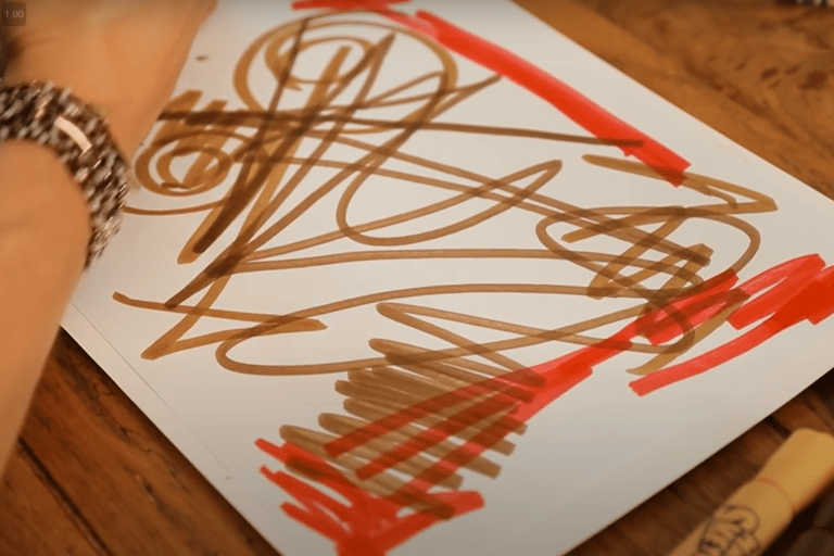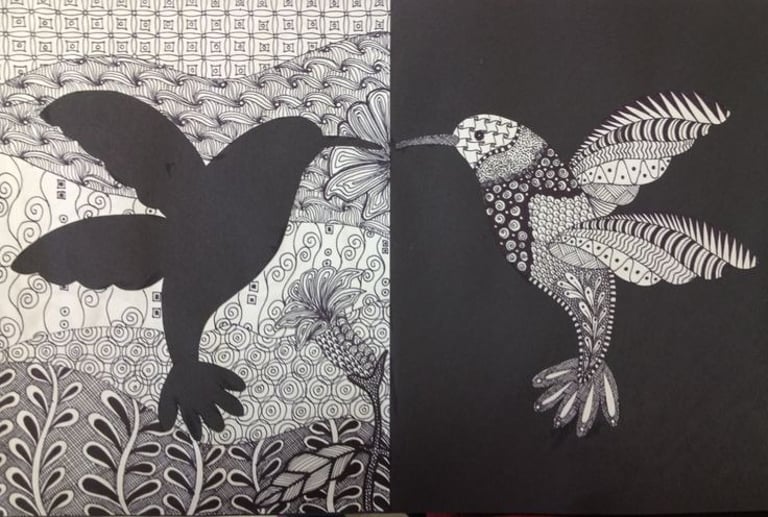 Using the chosen colour, start making lines, patterns, and shapes on the white drawing paper.