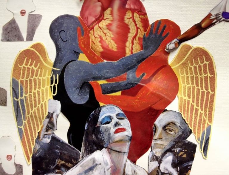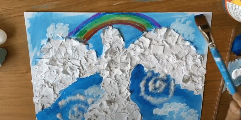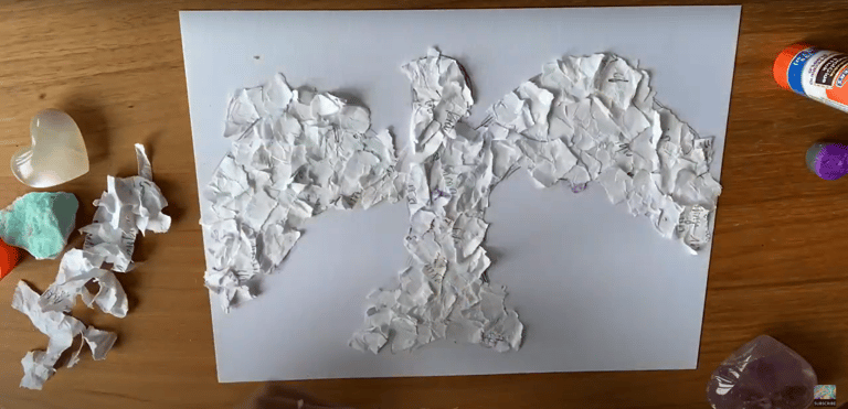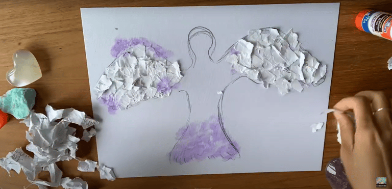 Now, collage the torn pieces of paper onto your bird as if they were feathers. Each piece represents something that once weighed you down. Attach them carefully, building your bird slowly and mindfully. As you work, imagine what it would feel like not to carry those thoughts anymore. This is you acknowledging the past and letting it all go.
