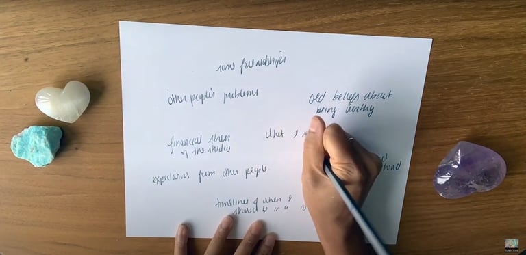On your first sheet of paper, write down everything that feels heavy or burdensome in your life—old thought patterns, habits, relationships, past experiences, or even other people’s expectations. This is your chance to unload. Don’t censor yourself; fill the page with your honest thoughts.