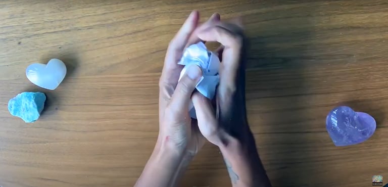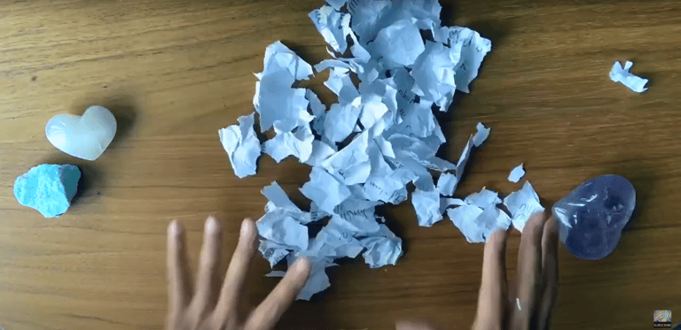 When you’re done writing, take that piece of paper and scrunch it into a tight ball. Put all your tension into that ball of paper and then rip it up into little pieces. Take your time to feel the lightness of the paper.